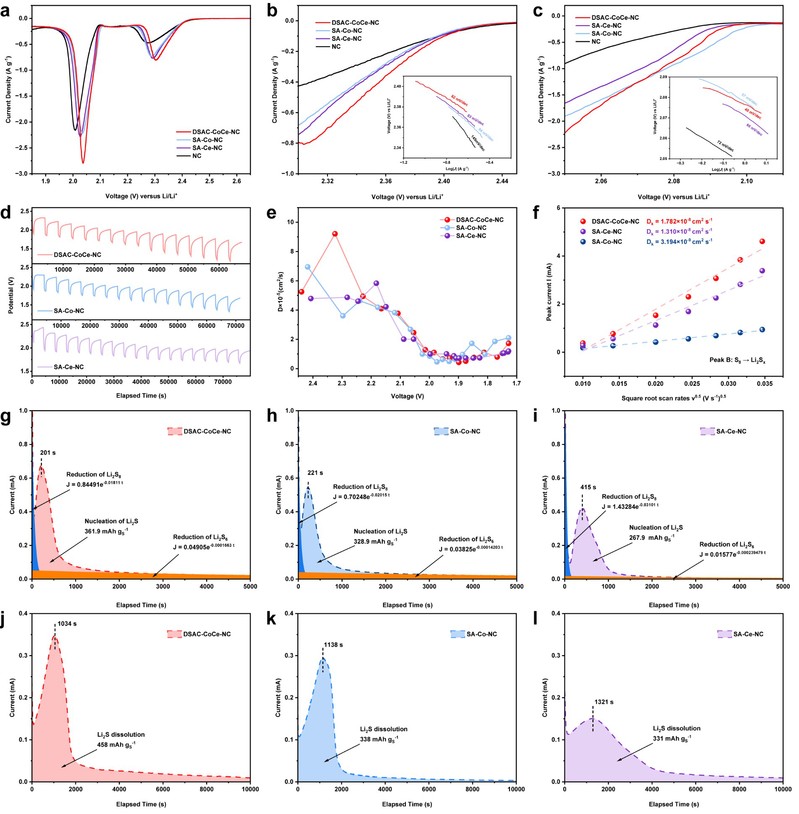 图3. 钴/铈双单原子催化剂和对比样品在硫还原反应中的电催化性能。