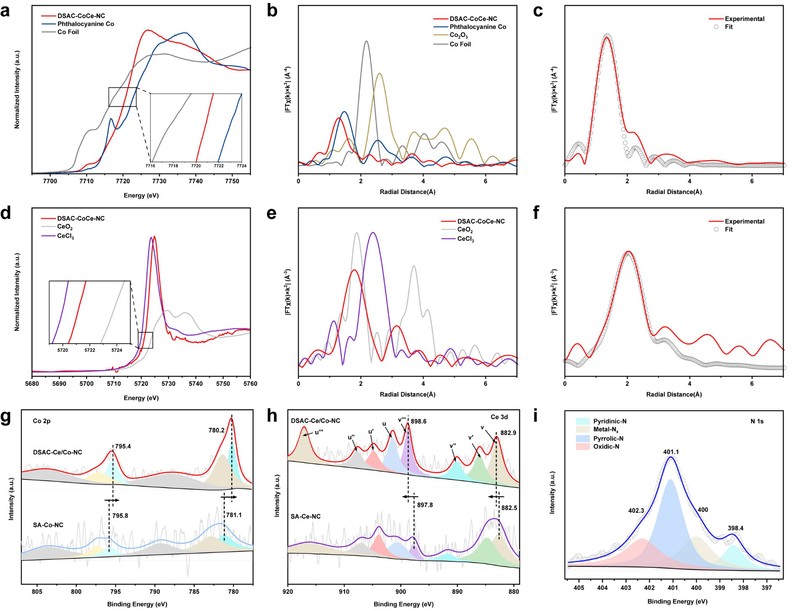 图2. 钴/铈双单原子催化剂的同步辐射和XPS表征。