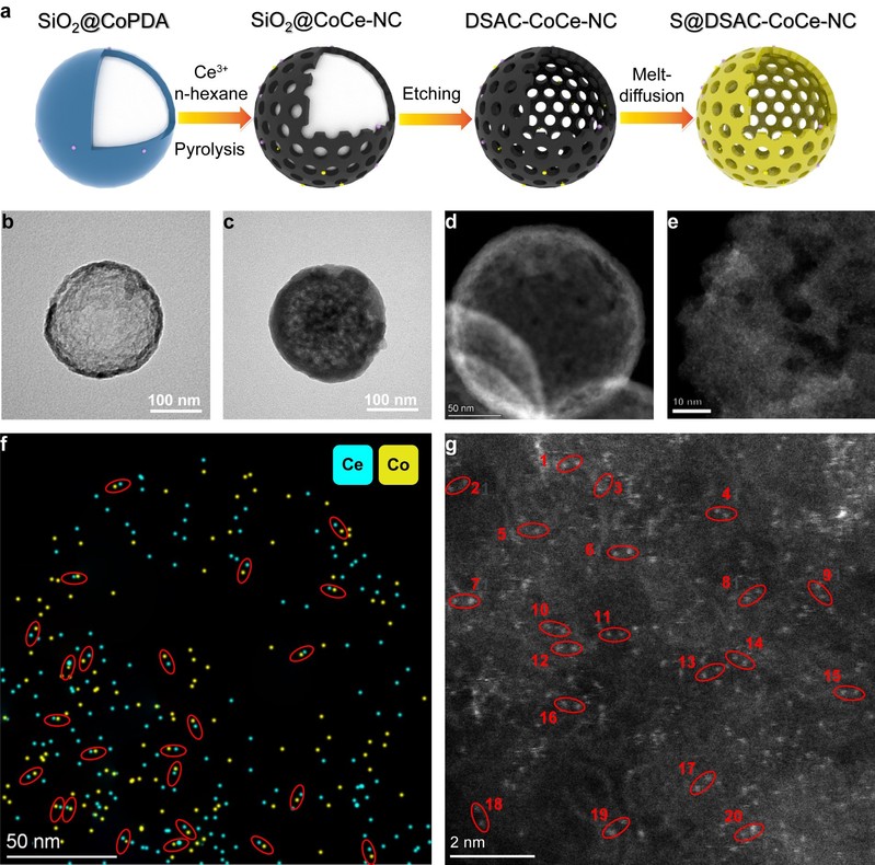 钴/铈双单原子通过吸附-催化协同设计实现多硫化物快速转化。